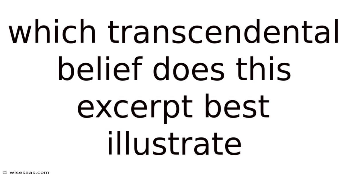 It seems there may be a misunderstanding or an oversight in your request. To provide a meaningful and accurate article, I need the specific excerpt you’re referring to. That said, without the text, it’s impossible to determine which transcendental belief it best illustrates. Transcendental beliefs—such as those found in philosophy, religion, or spirituality—can vary widely, and the excerpt’s content is essential for identifying the correct answer.