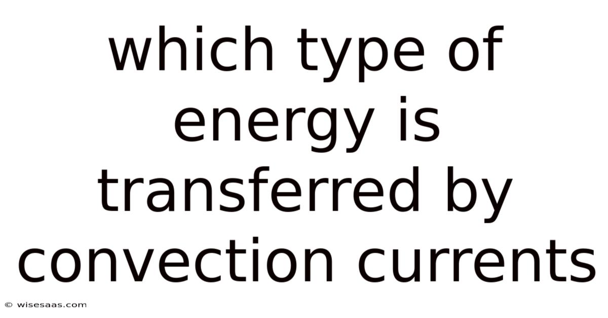 The primary type of energy transferred by convection currents is thermal energy (heat). This occurs in various natural and artificial systems: