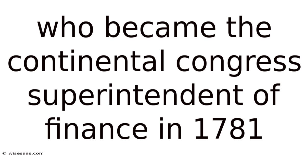 Who Became The Continental Congress Superintendent Of Finance In 1781