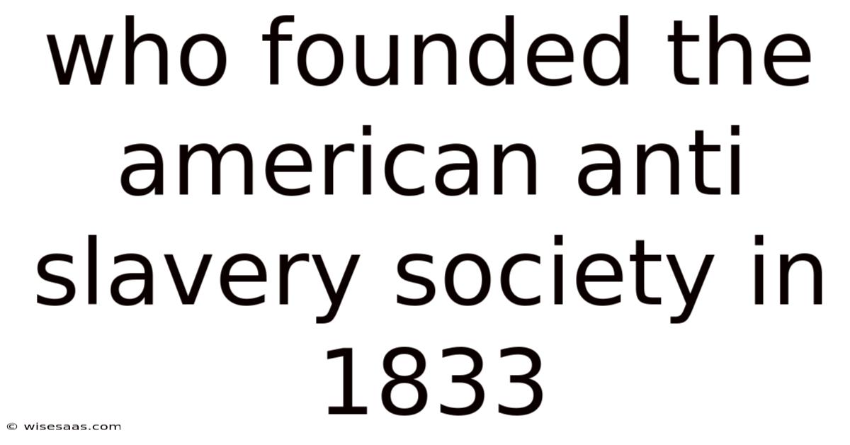 The American Anti‑Slavery Society (AASS), established in 1833, marked a key moment in the United States’ struggle against the institution of slavery. Founded by a coalition of determined abolitionists—most notably William Lloyd Garrison, Lewis Tappan, and Elizabeth Cady Stout—this organization became the first national, organized effort to end slavery across the entire country. Understanding the founders’ backgrounds, motivations, and the socio‑political context of the era illuminates why the AASS was such a revolutionary force for change No workaround needed..