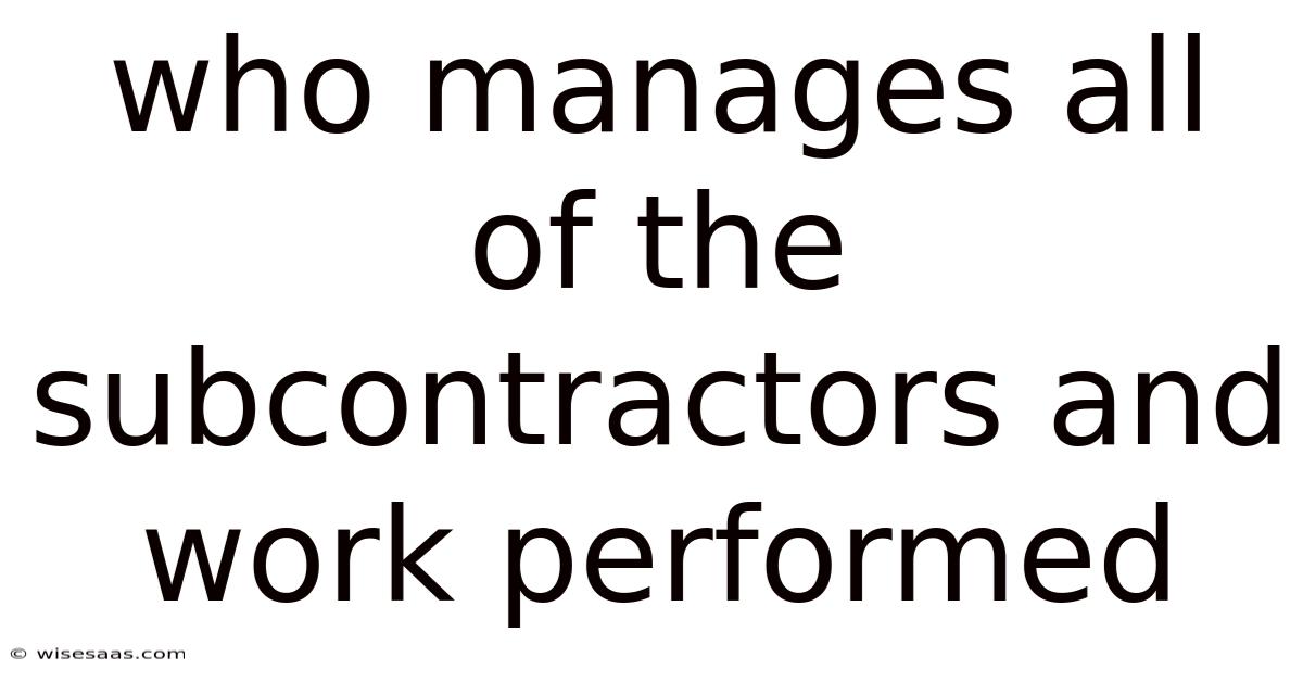 On the topic of managing subcontractors: make sure you recognize the diverse roles they play within a project. It matters. Subcontractors are individuals or companies that provide specialized services or skills that a primary contractor may not possess. This can range from technical expertise to creative talents, ensuring that projects meet the required standards. Worth adding: the key question arises: who is responsible for overseeing these subcontractors? The answer lies in understanding the structure of project management and the responsibilities of different stakeholders involved Not complicated — just consistent..