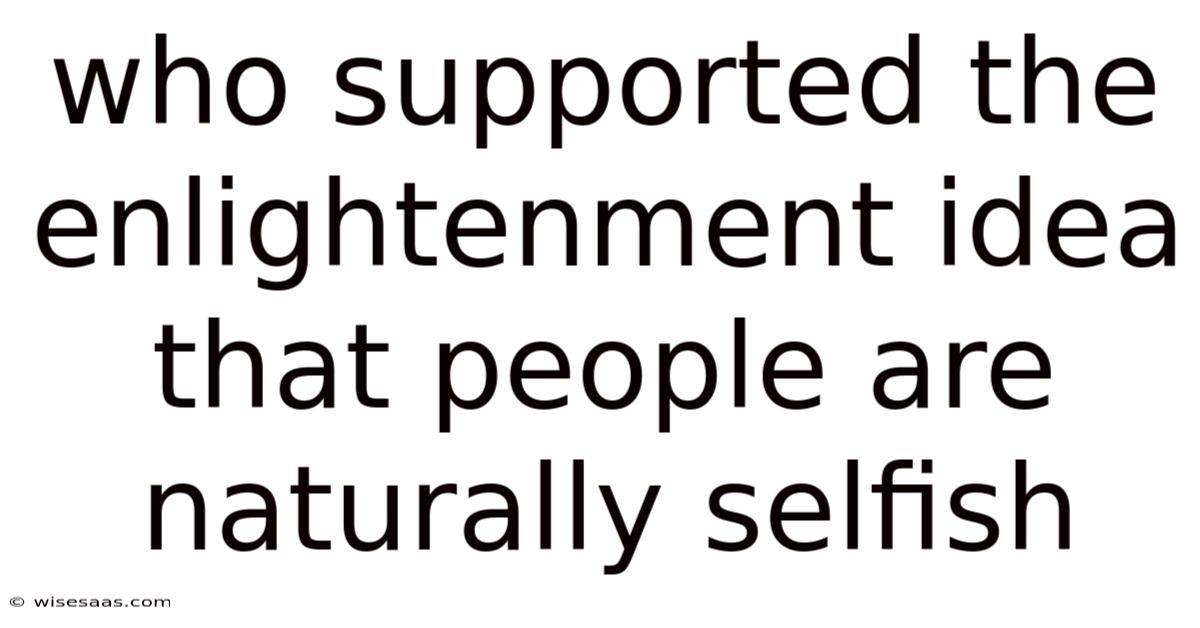 Who Supported the Enlightenment Idea That People Are Naturally Selfish
