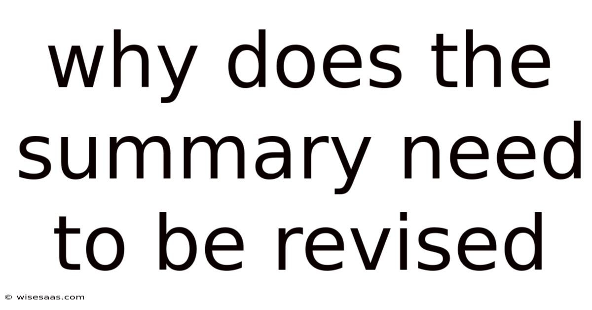 Why does the summary need tobe revised is a question that cuts to the heart of effective communication. A well‑crafted summary does more than condense information; it clarifies meaning, highlights key points, and ensures that the audience walks away with the intended understanding. When a summary is left unchecked, it can mislead, confuse, or simply fail to capture the essence of the original material. This article explores the underlying reasons for revising a summary, outlines practical steps for improvement, and answers common queries that writers and students encounter when striving for precision and impact Not complicated — just consistent..