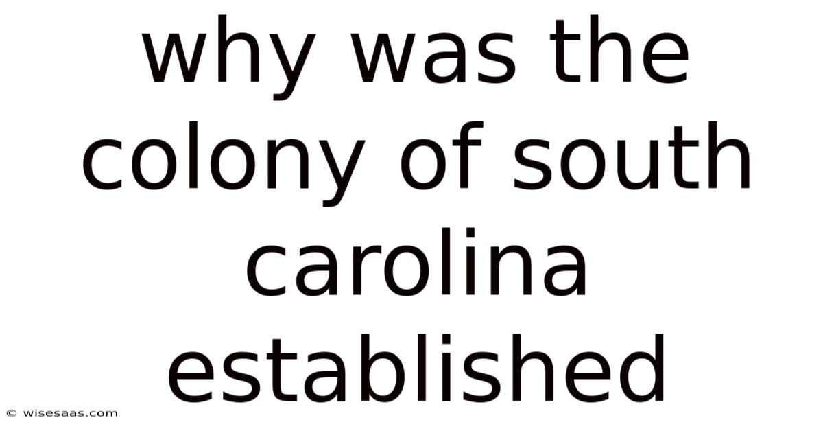 Why Was The Colony Of South Carolina Established