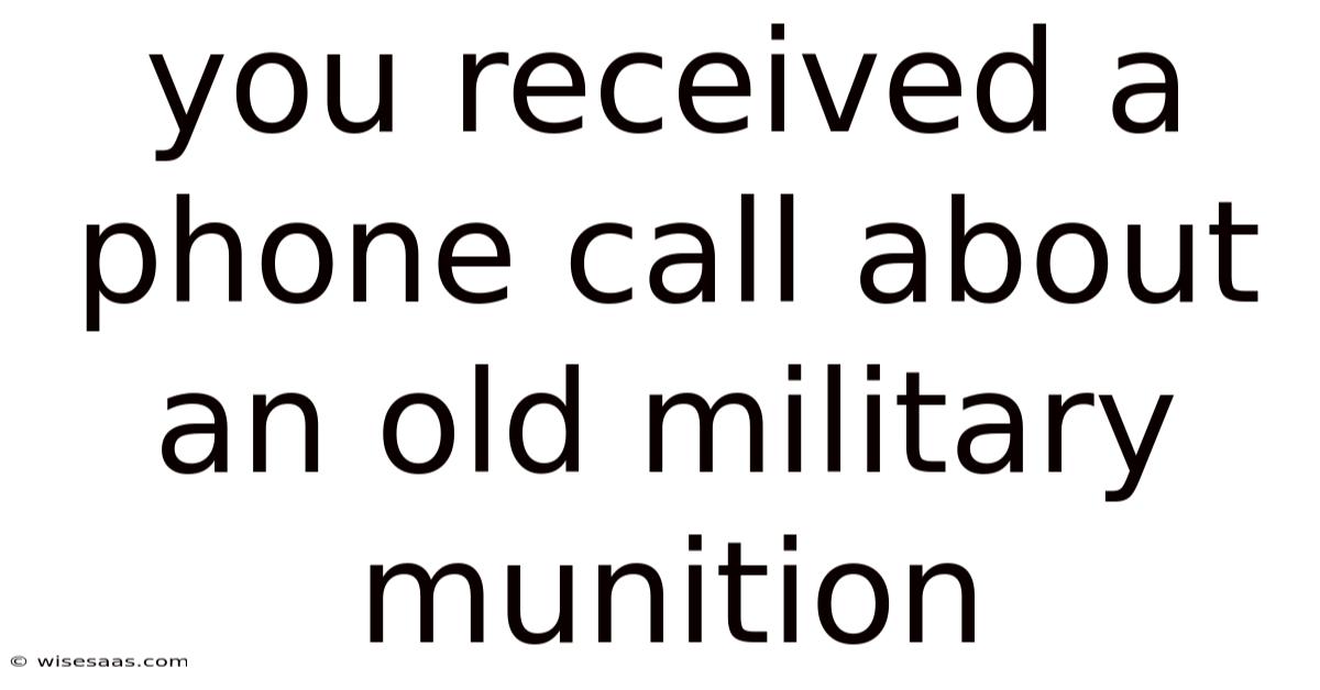 The unexpected ring of a phone callcan shatter the calm of an ordinary day, especially when the voice on the other end delivers news that sends a chill down your spine: "We've found an old military munition." This scenario, while rare for most, is a stark reminder of history's lingering dangers. Discovering or being informed about an old military munition – whether a rusted artillery shell, a corroded grenade, or a forgotten chemical agent – demands immediate, calm, and decisive action. The consequences of mishandling such items are devastating, potentially leading to catastrophic explosions, toxic chemical releases, or severe injuries. This article outlines the critical steps to take, the inherent dangers, and the essential protocols for ensuring safety when confronted with this perilous situation Practical, not theoretical..