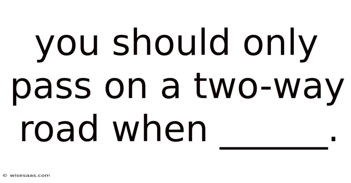 Safe passing on two-way roads requires patience, good judgment, and strict adherence to established rules. Still, **You should only pass on a two-way road when you have clear visibility, no oncoming traffic exists, and road markings permit it. ** These three conditions form the foundation of safe overtaking, but they must be combined with proper technique, appropriate vehicle conditions, and a conservative mindset that prioritizes safety over time saved Worth knowing..